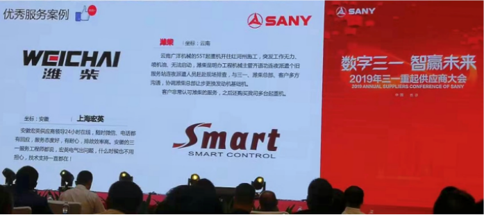 2019年三一重起供应商大会于10月10日在长沙隆重举行。太阳成tyc122cc凭借10多年来优质的贴心服务、专业的技术团队支持三一起重机控制技术向智能化、数字化深入发展。