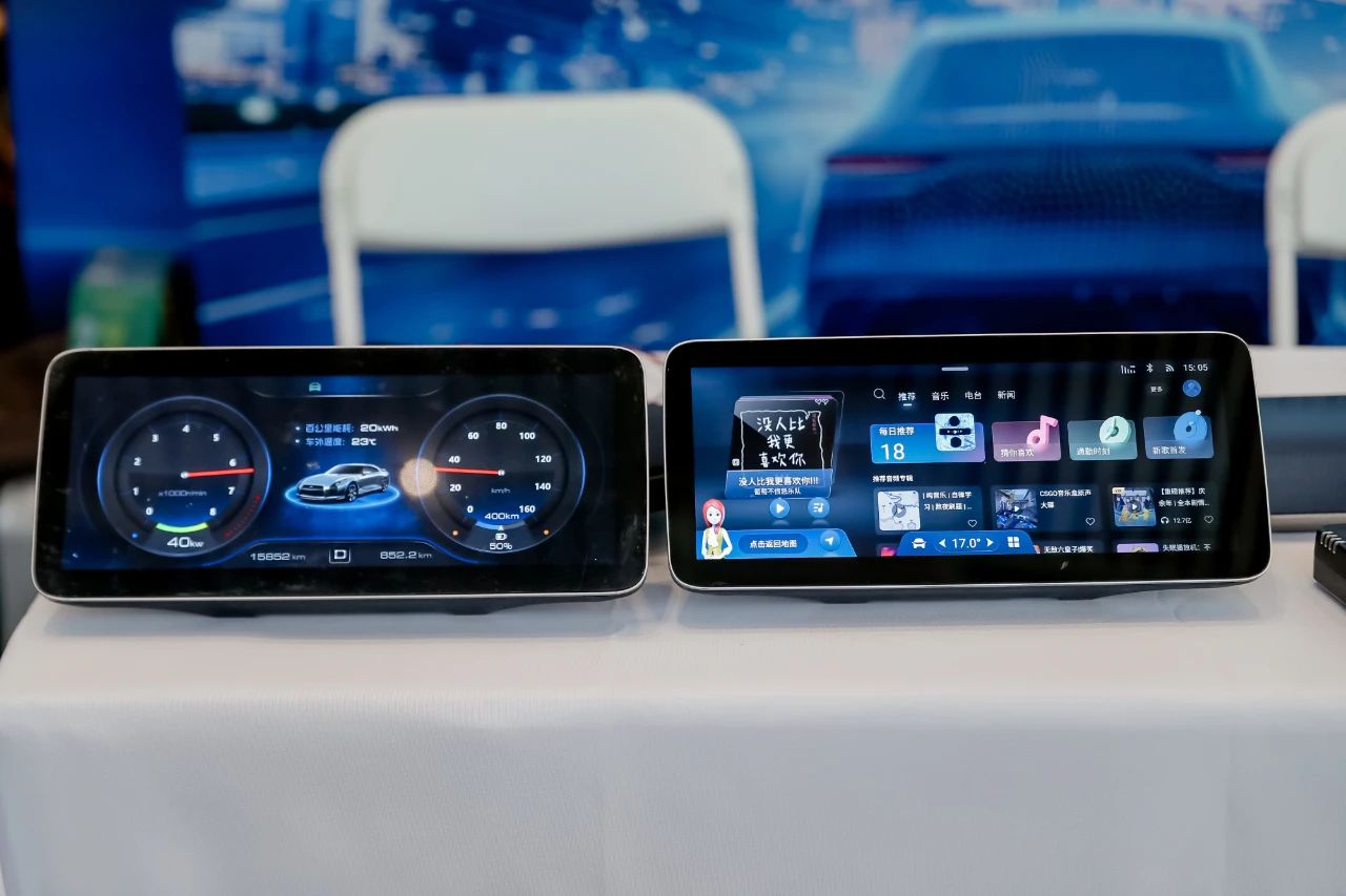 活动现场,太阳成tyc122cc展示了最新的智能座舱系列产品,其中二联屏作为驾驶室的重要组成部分,通过将传统仪表屏和中控屏融合为一体,优化驾驶员的视觉体验,同时支持与智能手机、车载网络等设备的互联互通,实时同步导航、通讯等数据,提供更加智能和便捷的出行服务。