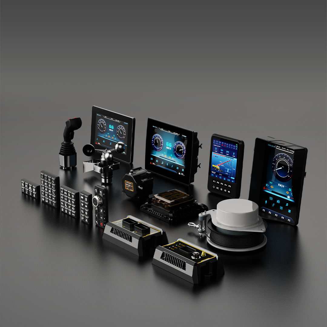 专为移动机械打造的显示终端、按键面板、电源管理模块、控制模块、传感器等,适配复杂工作环境,满足行业严苛要求。